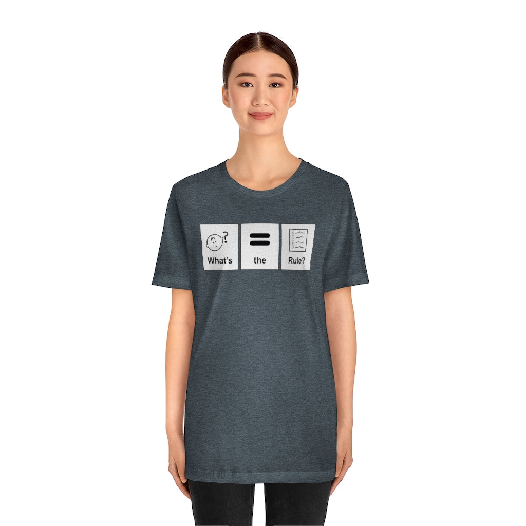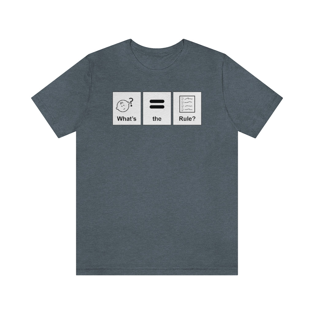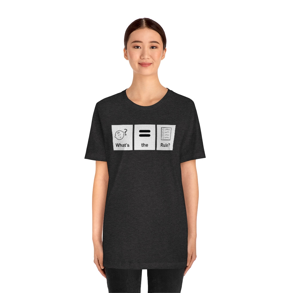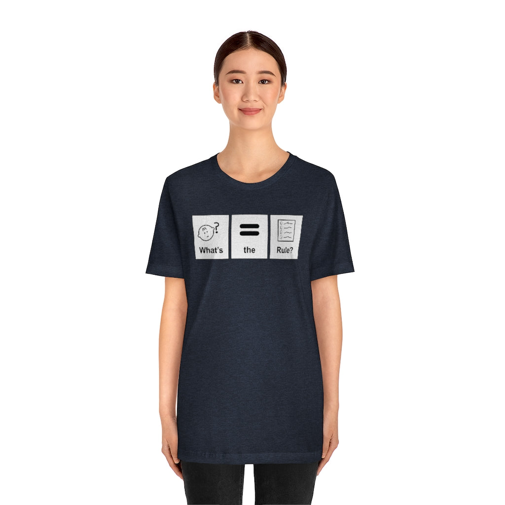 Designed by Gabriella Cooperman, the What’s the Rule logo takes inspiration from educational and communication tools such as AAC devices used by many autistic people on a daily basis.