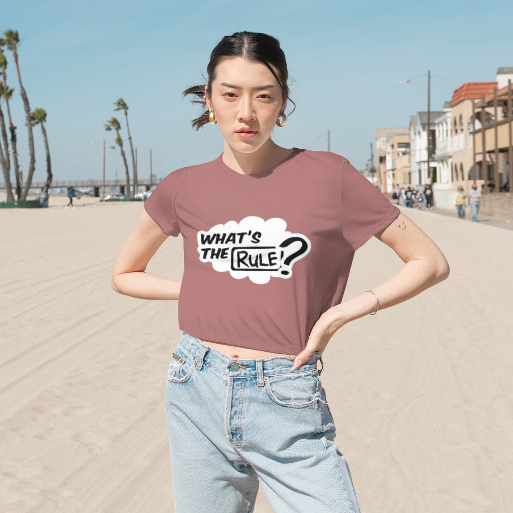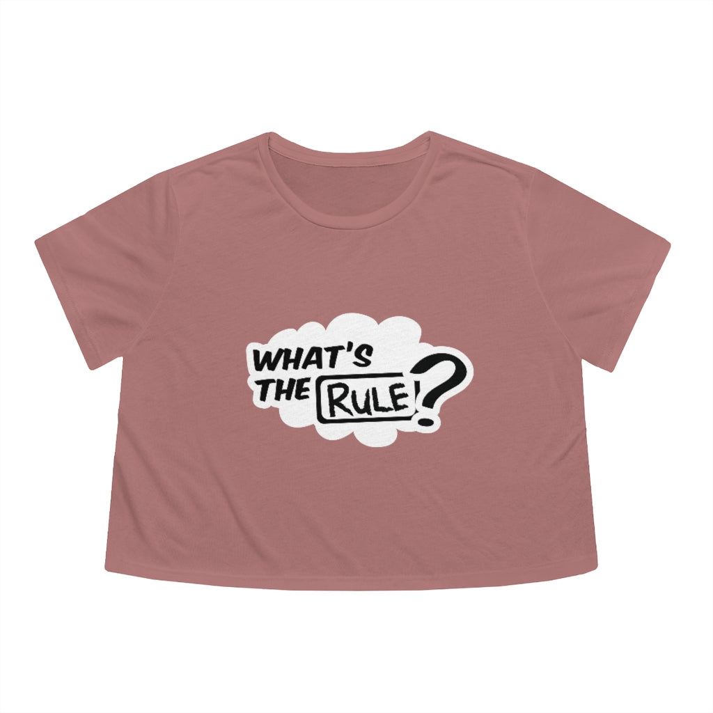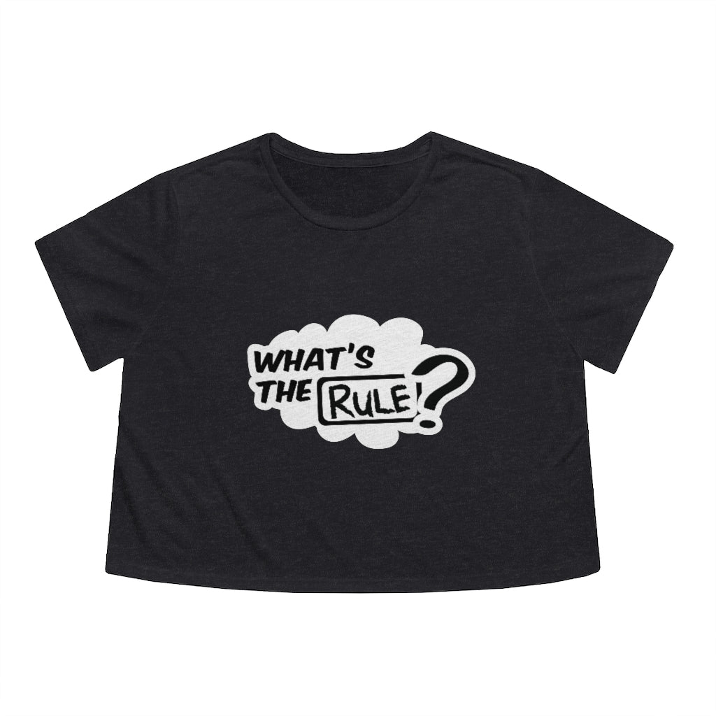 This Flowy cropped tee features our new What's the Rule logo alongside artwork of Sam and Jack designed by Jennifer McCue of Jnoelle Designs.