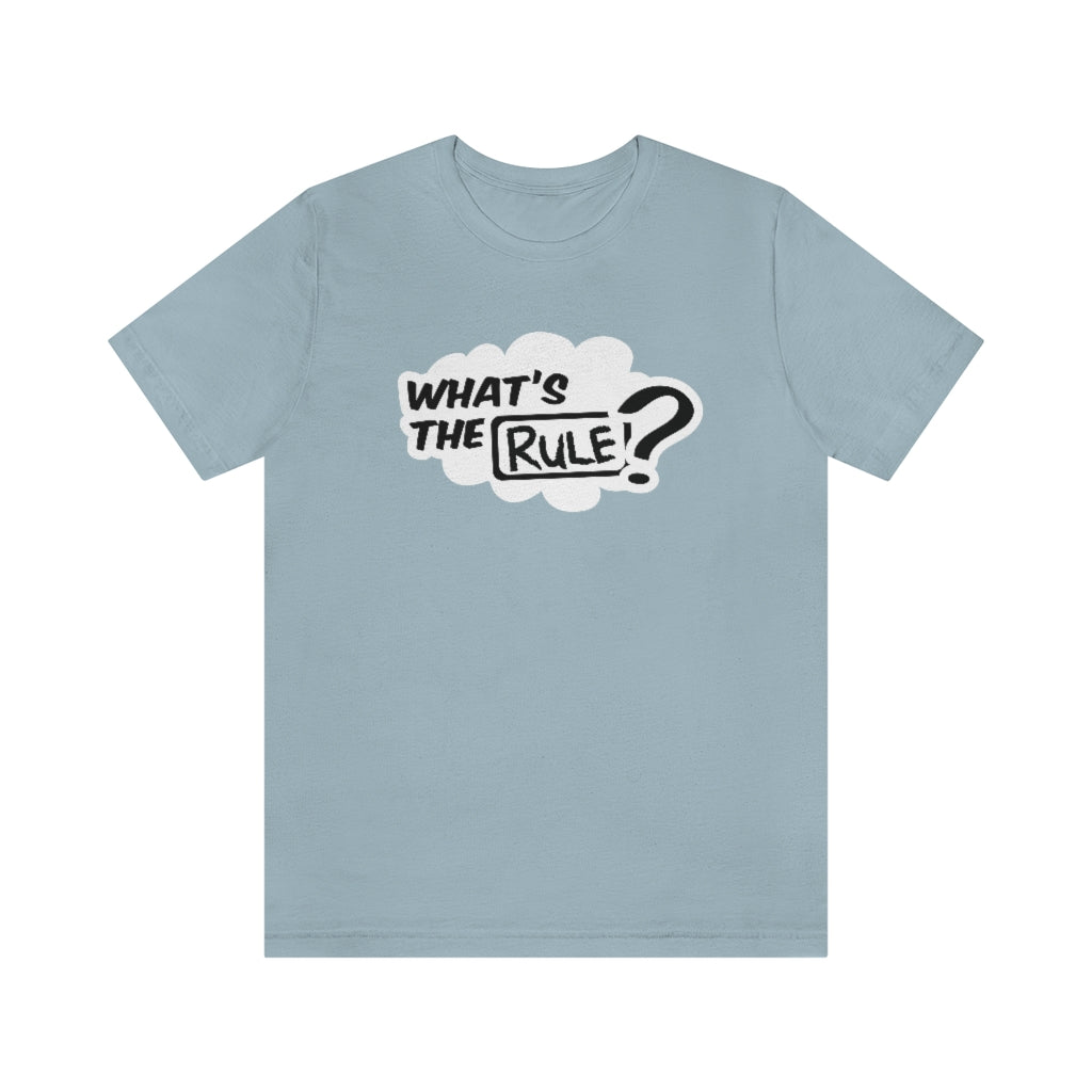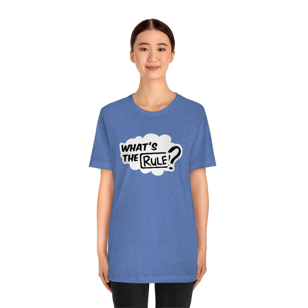This awesome tee features our new What's the Rule logo designed by Jennifer McCue of Jnoelle Designs.